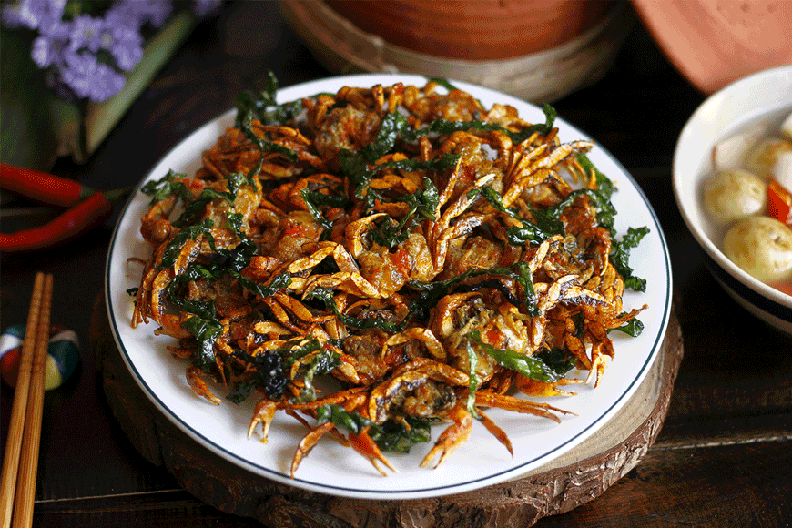 Thưởng thức đặc sản cua đồng rang lá lốt tại mảnh đất Ninh Bình