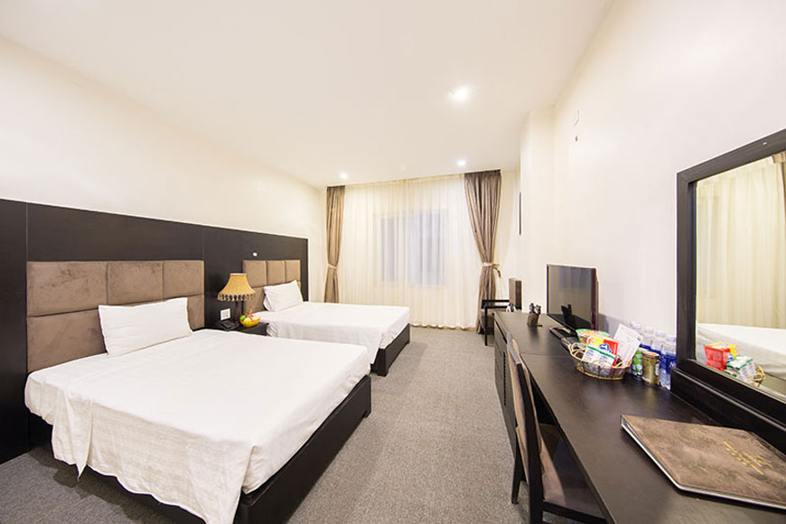 Các phòng nghỉ ở Harmony Hotel có tông màu sáng và được trang bị đầy đủ tiện nghi. Ảnh: sưu tầm
