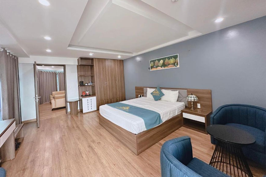 Với 40 phòng nghỉ được thiết kế tinh tế, khách sạn mang đến trải nghiệm nghỉ ngơi đẳng cấp với nội thất cao cấp, gam màu xanh dịu mắt và ban công riêng thoáng đãng, cho phép du khách ngắm nhìn toàn cảnh thành phố hoặc thiên nhiên hùng vĩ của Thái Nguyên.